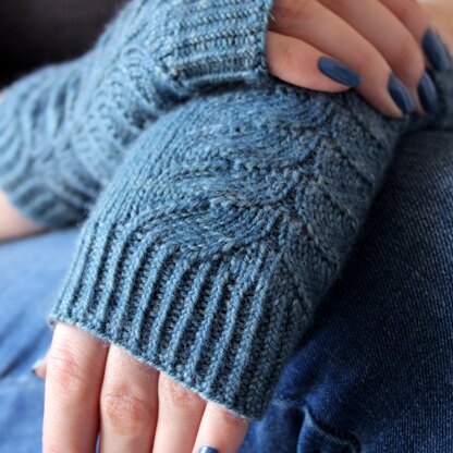 Meaning “rivulet” in Scots, Keechan is a simple but fun fingerless mitts pattern with a swirling lace pattern covering half of the back of the hand and wrapping around the edge to the palm. The lace pattern flows around the side of the hand like a fast running stream flowing gently from cuff to cuff. If you’d like matching hands and feet, check out my Sruthail sock pattern!