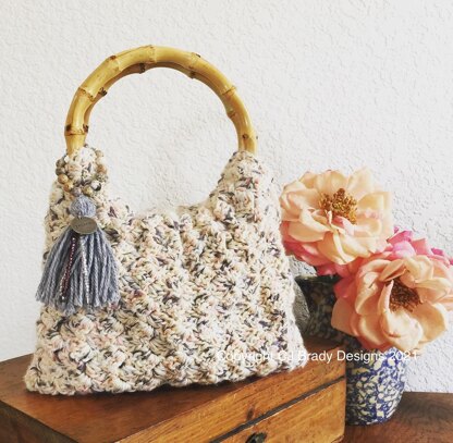 My Keep Calm Bag is crocheted and lined in a flat piece before attaching it to the bamboo handles. And no worries, only basic sewing by hand skills are required. I provide step by step instructions to crochet, line and assemble the bag. Once your bag is finished you can add a yarn or bead tassel to one of the handles if you wish to add a little extra pop.