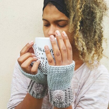 They look like they're knitted and yet they are not. It's a perfect project for anyone who, like me, likes the look of knit, but doesn't pick up needles. The little pom pom adds a bit of whimsy to the mitts, but it's optional and you don't have to add it, if you don't want to.