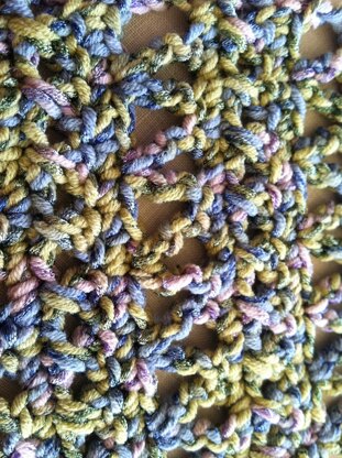 The colors in this scarf were inspired by a Key West sunset. Key West is known for its beautiful sunsets and the particular one that inspired this scarf was beautiful shades of green, gray, yellow and mauve. The stich combination in this scarf is open and relaxed, typical of the Key West feel.