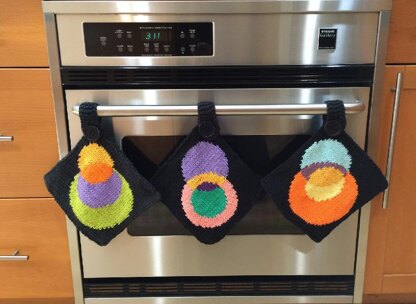 Circle Pot Holdersare based on knitvana design patterns for kGeometry - knitting Geometry.