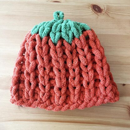 THIS IS A LOOP YARN FINGER-KNITTING PATTERN. The Kids' Pumpkin Hat is a novelty pattern that looks like the top of a pumpkin. Perfect for fall and Hallowe'en! Pattern comes with suggestions for customization and size modifications.