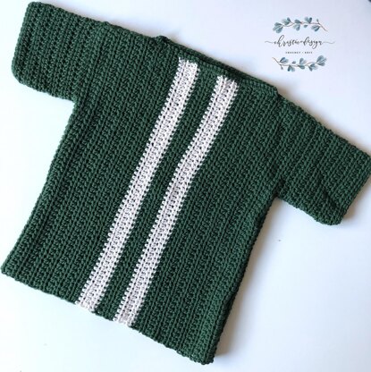 Racing fans little and big alike will adore this easy to make and easy to wear t-shirt. Crocheted sideways to easily create those vertical stripes which are so reminiscent of racing stripes. Boys and girls will enjoy the lightweight breathable cotton dk yarn. If I crochet it for my kids, then it has to be machine washable. Paintbox Yarns has the absolute best color selection in an array of yarns. This beginner friendly crochet pattern is worked from two rectangles and seamed together. The sleeves are then added and worked in the round, which makes them easy to adjust. I created this shirt especially for my car lover. It wasn't until my third son that we finally had a boy obsessed with cars and all things that go. He also loves green, so I'm happy to say this is his current favorite shirt. Which replaced last year's gift the Short Sleeve V-Neck.