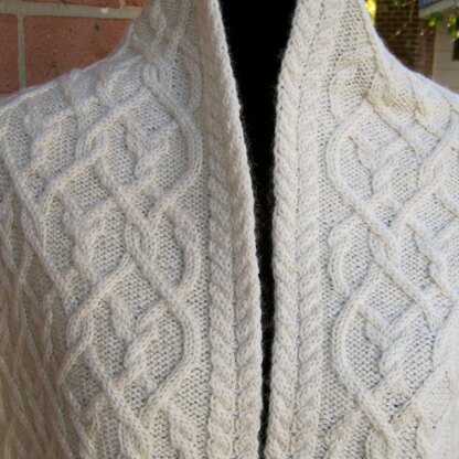 This is a pattern for a cabled wide scarf: 12 inches x 78 inches or your desired length. The wide scarf is knit with a sport weight yarn, and your favorite sport weight will work for this pattern.