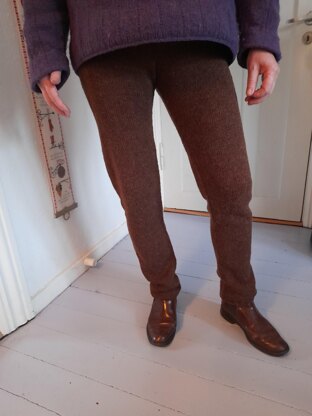 KILLIN - lovely lady woollen trousers in plain knitting in 2ply Jumper Weight wool. The trousers are shaped properly after tailoring principles giving the model a splendid fit. To work flat - detailed written pattern.