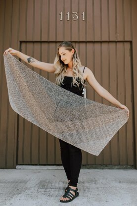 The Kinetic Wrap is a beginner-friendly trapezoidal wrap with triangular stripes throughout the fabric. The stripes are thoughtfully designed to maximize the yarn from each ball and not have to break into a second ball of any one colour.