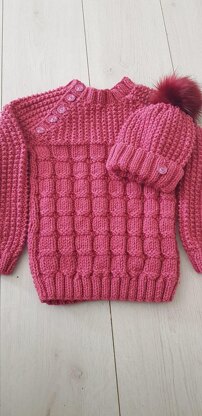 The pattern contains instructions for a Jumper and Traditional hat to fit 14″ to 26″ chest and the design of the neck allows for the softness of babies head when putting it on. Ideal knit for beginners.