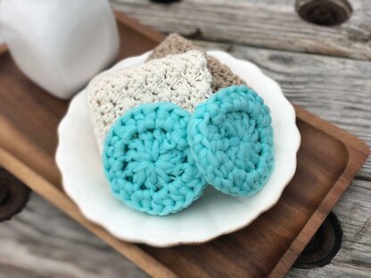 Kitchen scrubber made from tulle, worked in one piece, in the round.