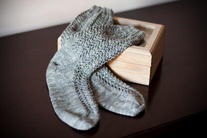 Twisted rib and an old favourite simple lace pattern are combined to create an effortlessly stylish, feminine pair of socks. Knit from the top down with a heel flap, these socks come in three sizes, and use more stitches in the sole than the instep to allow for the extra ease of lace knitting.