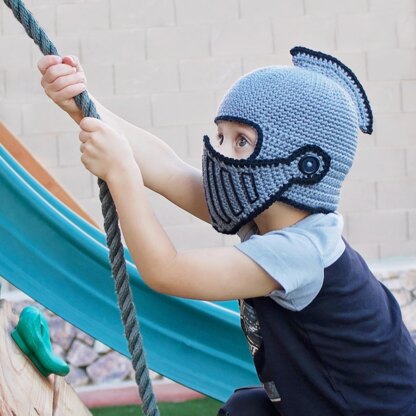 Introducing the knight helmet! Our cool knight blanket has been transformed into this awesome knight helmet. Use it during the cold months to keep you warm or turn it into a cool knight costume. The mask is removable but it can also be sews in place, perfect for babies or littles, so it doesn't move around. The knight helmet comes in a girl and boy pattern so everyone can join in on the fun. Who's ready to build their party of knights? With these detailed instructions, even those with little crochet experience can find success creating their own masterpieces!
