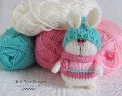 This little bunny is adorable! You never know when the weather might be chilly so he is always ready with his hat and scarf