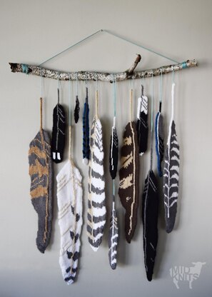 Each Province and Territory of Canada has its own official bird emblem. This pattern includes 13 charts so you can knit a a feather from each bird and display them together in your own homage to Canada. These feathers are double the size of the actual feathers to capture the gorgeous details and patterns you would find in a real specimen (knit sizes range around 12" and 24" give or take some inches for the smallest feather.) Displayed alone, or as a bunch, these feathers will make gorgeous wall art. They would also make the perfect addition to your purse or dreamcatcher. With full color charts, and tutorials including how to read the charts, i-cord techniques, how to knit in the round with three needles and more, this pattern is an easy to follow how to.
