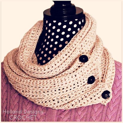 This scarf is designed to also become a cowl... simply wrap the scarf around your neck a couple times and button together to secure.