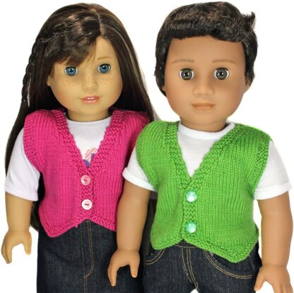 Any season, this is a fun waistcoat to prep up your outfit! With this PDF knitting pattern you can create a waistcoat with a pointed front hemline. The waistcoat closes with two buttons in the front. Also included is boy and girl options for buttonhole placement (left or right). There are two options for the back, straight or pointed. This pattern knits with 4 ply sport weight yarn and works quite quickly.