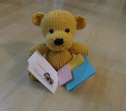 This Knitkinz Bear is a perfect way to give a hug this Valentine Day to your Valentine. The Bear can sit next to your Valentine in the office. He can keep pens or business cards. Or he can sit and look at computer. This Bear is 6” tall. Any Yarn can be used for your Bear. For this bear we used: Dark Yellow Yarn. For the Heart: Red Yarn Pattern for the Heart is free.