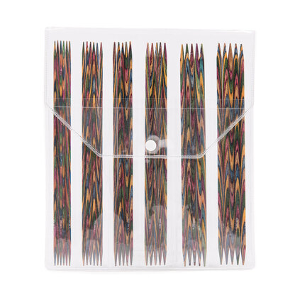 Dare the KnitPro double pointed needles! The best way to knit small 'in the round' projects such as socks, the tops of hats, even the fingers of gloves. Double-pointed needles intimidate many an intrepid knitter but they are simpler to use than they look - just knit with two needles at a time while the others hold the rest of the project. KnitPro's beautiful multi-coloured Symfonie wood needles are adored by knitters the world over for their ease of use, comfort - and their stunning looks of course! The gorgeous wood surface is perfect for 'slippy' yarns; the warmth is kind to hands and the needles are wonderfully flexible. Just don't get distracted by how pretty they are... This set contains either 10cm, 15cm or 20cm needles. 10cm Needle Set includes: 2.00mm, 2.25mm, 2.50mm, 2.75mm, 3.00mm, 3.25mm (x6), and 3.50mm (x5).15cm Needle Set includes: 2.00mm, 2.25mm, 2.50mm, 2.75mm, 3.00mm, and 3.25mm (x6). 20cm Needle Set includes: 2.50mm, 3.00mm (x6), 3.50mm, 4.00mm, 4.50mm, 5.00mm (x5)