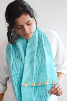 Designed in honor of Knitsburgh Yarn Shop in Pittsburgh, this richly cabled cowl is worked flat and joined at the end with functional buttons. Wide bands of of garter stitch frame the cabled pattern.