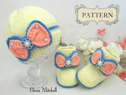 The Baby Hats and Booties are knitted on two needles.