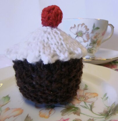 This cute little cupcake can be used as a pin cushion or purely as a decoration. It is worked in dk (lightworsted) yarn on a pair of 3.25mm (US3 needles).