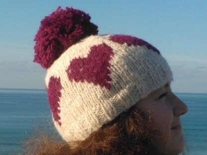 Lovely cowl, hat and mittens with heart motifs. Knitted in lovely warm alpaca aran yarn.