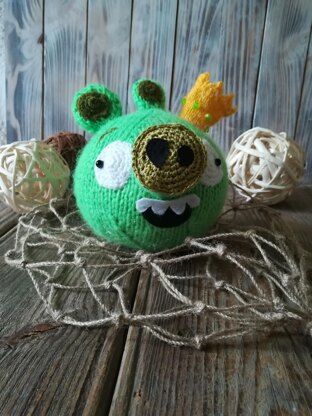This is a knitting pattern for the character King Pig from Angry Birds. The template is clear and detailed. The size of the finished toy is 13 cm. It is knitted, but there are also crocheted details. These are the eyes and nose. The template is created in PDF format and will be sent to your email after payment.