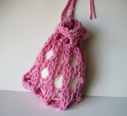 Finished Size: This soap saver is very stretchy in all directions, but laid out flat, un-stretched, it measures approximately 5 inches tall (12.5cm) by 4 inches (10cm) wide.