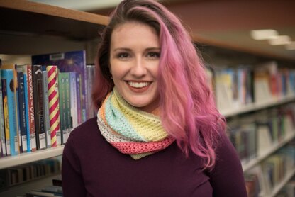 Once again, I’m teaching knitting at the library. The project for the next step after beginners and advanced beginners needs to be completed in 3 weeks, and it needs to be knittable by knitters with a variety of skill levels. Hence, this new version of the Knitting at the Library Cowl, a lace sampler, was born. There are five sections incorporating different lace patterns with varying difficulty. And, instead of ribbing, the pattern begins with rows of seed stitch, another great technique for teaching knitters to read their bumps and “V’s.” The pattern is written for both fingering and worsted weight yarns.