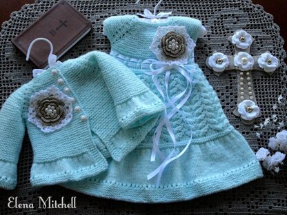 Knitting Pattern Christening Baby Dress Baby Jacket by Elena Mitchell