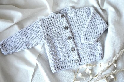 Worked from the bottom up in one piece to underarm, then divided for fronts and back, which will be worked separately. Sleeves are knitted separately. Schematics are included in this pattern.