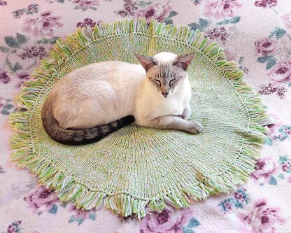 Are you thinking about experimenting with rug shape in your living room? Round area rug is a great addition to your space. The three-color melange rug, which you can easily make yourself from 3 different yarn colors. And here it is - lime, powder and light blue round carpet. The simple and quick pattern in stockinette stitches. YOU WILL NEED To knit this round rug I used a cotton yarn Alize Bella. It’s 100% cotton and it’s machine washable. Total - 300 gr (10.58 oz.), 100 gr (3.5 oz.)of each color. Yarn specifications → 1:Super Fine/Fingering/Sock/4 ply/14 wpi (50 g – 180 m, 1.76 oz. – 197 yards) Yarn needle, crochet hook. 1 pair 5.5 mm (9 US, 5 UK) circular needles length 32 inch (81cm). The length of needles refers to the entire length from one tip to another tip.