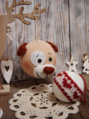 In the knitting pattern you will find a description of how to knit Christmas tree balls in two sizes. One balloon is made in the shape of a cute puppy. The second ball is made with a jacquard pattern and in addition to the “heart” pattern, I added 3 more jacquard patterns. Perhaps you will use your imagination and use this knitting pattern to knit many beautiful decorative elements.