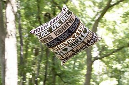This pillow can be worked in a variety of colors or just two of your choice. Use it to decorate your family room, craft room or bed as a reminder of your love for the craft. Knit in the round and double sided, this pillow works up quickly in worsted weight yarn. The words and abbreviations will make an interesting conversation piece for knitters and muggles alike. Make one for yourself or knit it up as a gift for a friend.