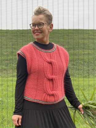 Vests are perfect for transitioning our wardrobes from summer to autumn. Worn atop almost everything, it’s a trend that’s as cosy and comfortable as it is chic. The Knotted Cable Vest pattern is great for a beginner knitter because the Back is knitted first in simple stockinette stitch, with no armhole shaping. The Front then introduces a Knotted Cable technique, which doesn’t require a cable needle, so is achievable for a beginner/intermediate knitter as a first cable project. The vest is knitted using 6.00mm (US 10) needle throughout, using basic stitches and minimal shaping at neckline. Featuring a simple classic look, Knotted Cable Vest never will be out of trend.
