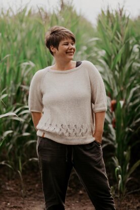 The Korn Tee is a simple and casual shirt. It is knitted seamlessly from the top down. For the short sleeves, these are cast off directly during the round knitting and temporarily put on hold for 3/4 sleeves and knitted after the body is finished.