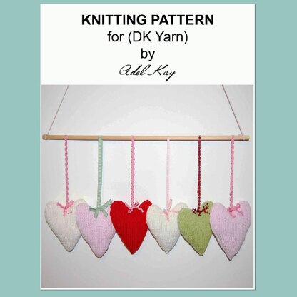 Kristie Country Cottage Shabby Chic Style 6 Heart Hanger Mobile or Pram Toy DK Yarn Knitting Pattern by Adel Kay