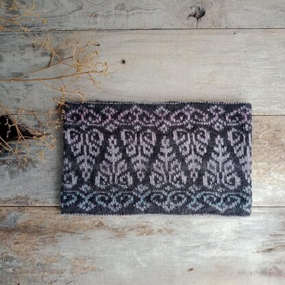 This elegant, reversible cowl is inspired by the Pucuk Rebung motif, a symbolic design element found in Songket Minang, a traditional handwoven brocade from the Minangkabau culture of West Sumatra, Indonesia. The name Pucuk Rebung translates to bamboo shoot, a symbol of resilience, growth, and new beginnings. Just like the young bamboo that bends and sways but never breaks, this pattern rises gently in elegant stitches, echoing the strength and grace found in nature and tradition alike.
