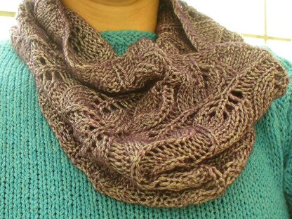 lovely spring / summer cowl. light and airy with a beautiful leaves lace pattern that keeps you alert as you knit.