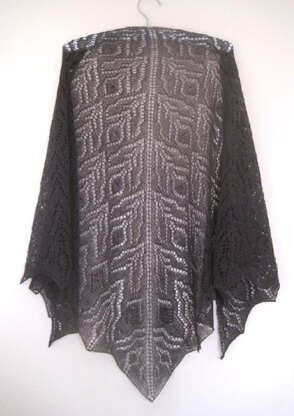 This pattern calls for lace weight yarn but can easily be knit up with a 4 ply yarn on larger needles. The pictured shawl has a wingspan of 160cm and a depth of 75cm and used 560m of lace weight yarn