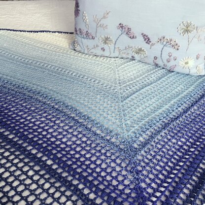Green Version: H Hook Lion Brand Summer Nights #1 weight yarn Size: 39 x 108 inch, blocked