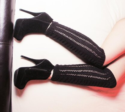 Label Case are a sexy set of legwarmers combining cables and lace. They are worked in the round using double pointed needles, two circular needles or the magic loop method. Which ever suits your needs better. Instructions are provided in written and chart format. One size included for UK 10 - 14 and the length can be adjusted to your needs. So you can have one pair ankle length and another pair over the knee if you wish.