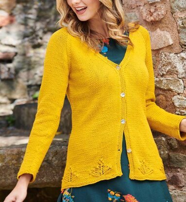 This is a pattern for a Lace Border Cardigan, called Branching Lace in Simply Knitting. It is in stocking stitch with garter stitch edging, and a lace motif along the hems, shaped at the waist. Photos Simply Knitting