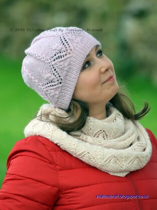 Lace Charm Hat and Cowl Set is feminine and elegant accessory for your winter wardrobe. The set is knitted with beautiful pattern which combines pretty lace stitch and simple cables. Both hat and cowl are knitted in the round and have no seams. The knitting pattern is easy to follow and suitable for intermediate knitters. It contains both charts and row-by-row instructions.