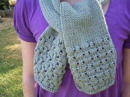 An elegant short scarf, with lace ends, in wool/alpaca/silk.