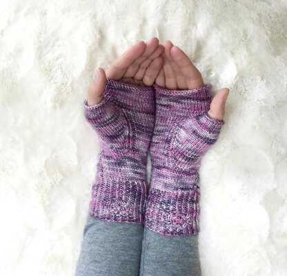 These are a nice fitted fingerless mitt. Knit in the round with charts and written chart instructions. Comes in sizes small, medium, and large, and can be knit to any desired length.