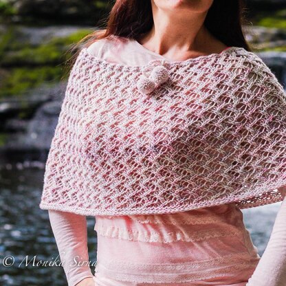 Let's visit the Irish countryside and listen to the soft whispering of the Celtic wind! Elegant and playfully mysterious, Lace Meara can be a cowl, shoulder wrap or infinity scarf. This design features intriguing lace unexpectedly worked with heavier yarn on larger needles. The lace, though complicated- looking, will fly off your needles with its easy to memorize stitch.