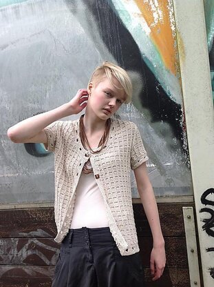 Based on a love for all things geometric. this little cardigan is made with square lace and edged with square holed bands. It's lovely little cardigan to put on over a tee on a cool evening or in a chilly air-conditioned office. It's shaped to the female form and knit with the latest bottom-up, contiguous technique. This ensures a perfect fit around the shoulders. It has a gentle A-line, short sleeves and a scooped neck line.