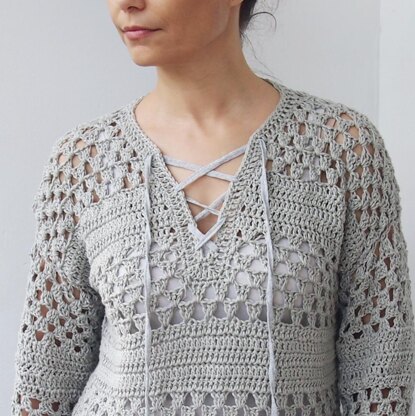 Pattern is written in US crochet terms. It's the lace up version of Granny stripes sweater.