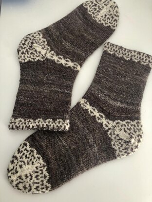 Sample socks are knit with handspun yarn in size Medium.