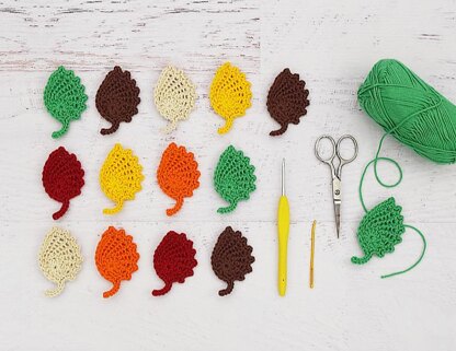 The Lacey Autumn Leaf can be made with any yarn weight and suitable hook. For example, if you use a light worsted / #3 yarn the leaf will be 3 inches. If using a worsted weight / #4 the leaf will be 4.5 inches.