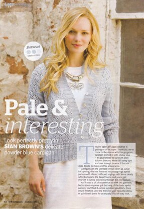 This is a pattern for a Lacy Cardigan, originally published in Knit Today. It has an all over simple lace pattern, with rib edges and a ridged eyelet detail above the ribs. The sleeves are in stocking stitch at the inside. Photos Knit Today.